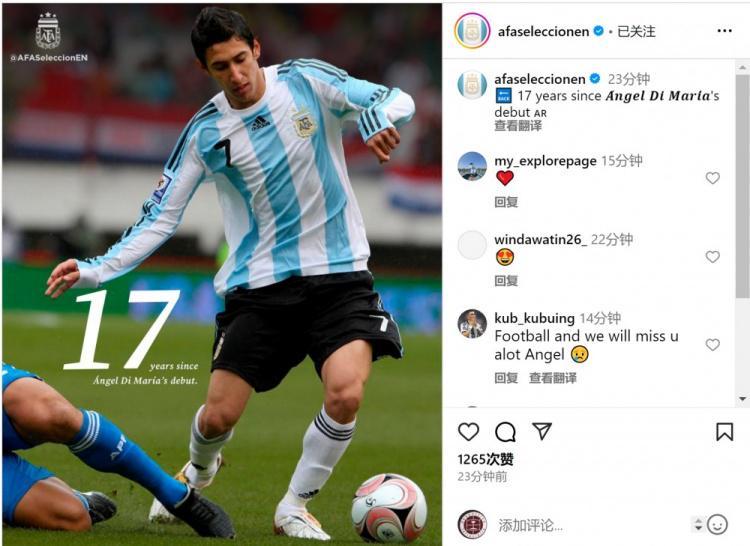 直播吧9月6日讯 阿根廷队官方更新社媒动态,回顾17年前的今天迪马利亚上演国家队首秀。