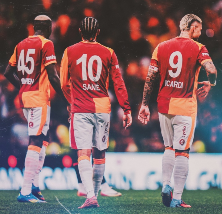比赛下半场出现罕见一幕,奥斯梅恩、伊卡尔迪两位替补登场的前锋,与首发的萨内同场竞技,三位身价曾破亿的球星齐聚土超赛场。